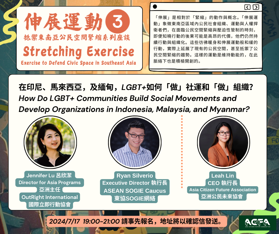 【伸展運動:抵禦東南亞公民空間緊縮】系列座談 / Series Talk "Stretching Exercise: The Exercise to Defend Southeast Asian Civic Space" (CN/EN)