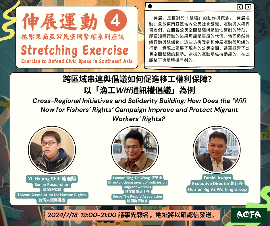 【伸展運動系列四】跨區域串連與倡議如何促進移工權利保障? 以「漁工Wifi通訊權倡議」為例