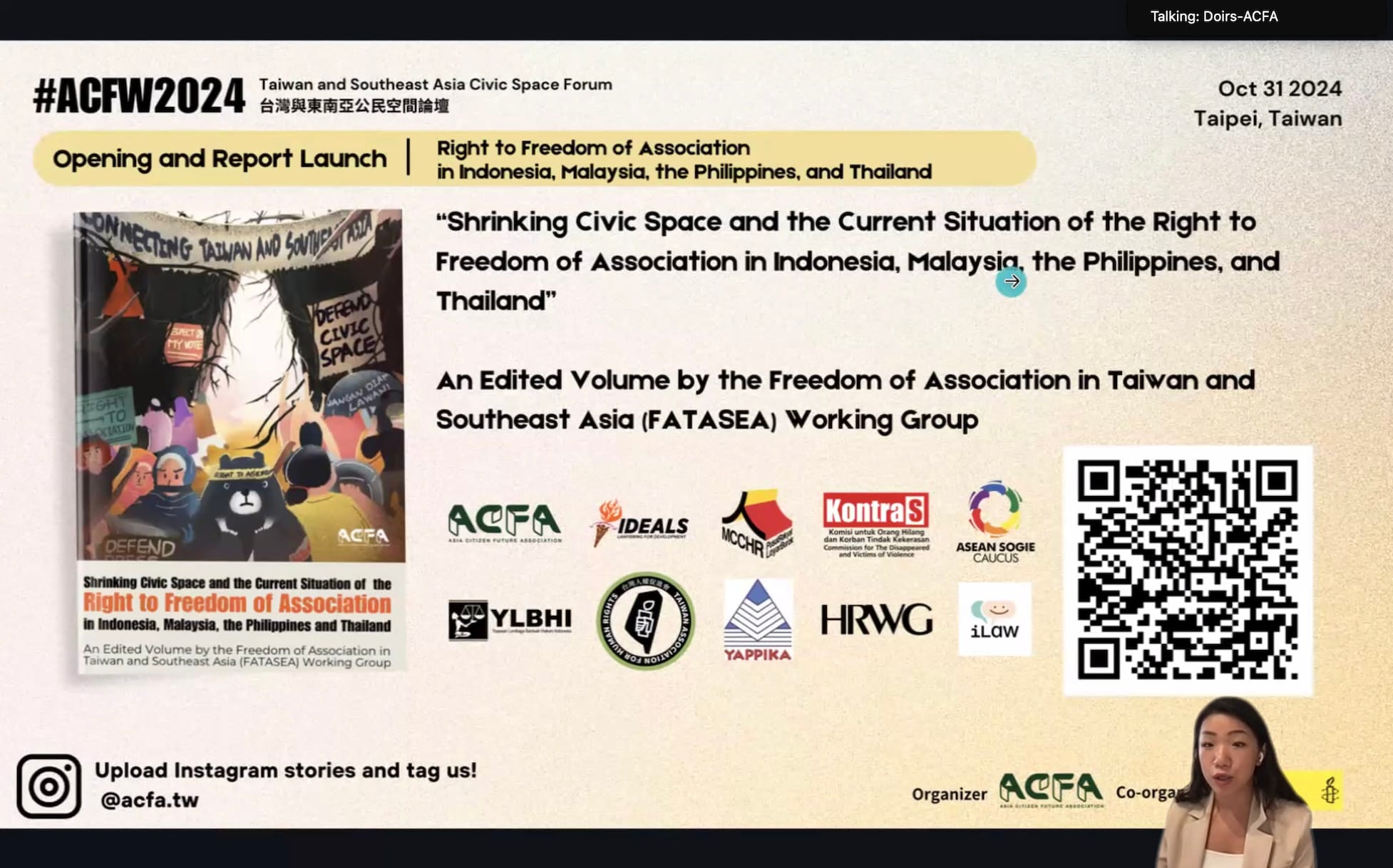 論壇上由亞洲未來公民協會與台灣東南亞結社權研究小組(Freedom of Association in Taiwan and Southeast Asia, FATASEA)發布《公民空間緊縮與印尼、馬來西亞、菲律賓與泰國之結社權現況》,凸顯此四國透過立法收緊結社權等基本政治公民權利。
