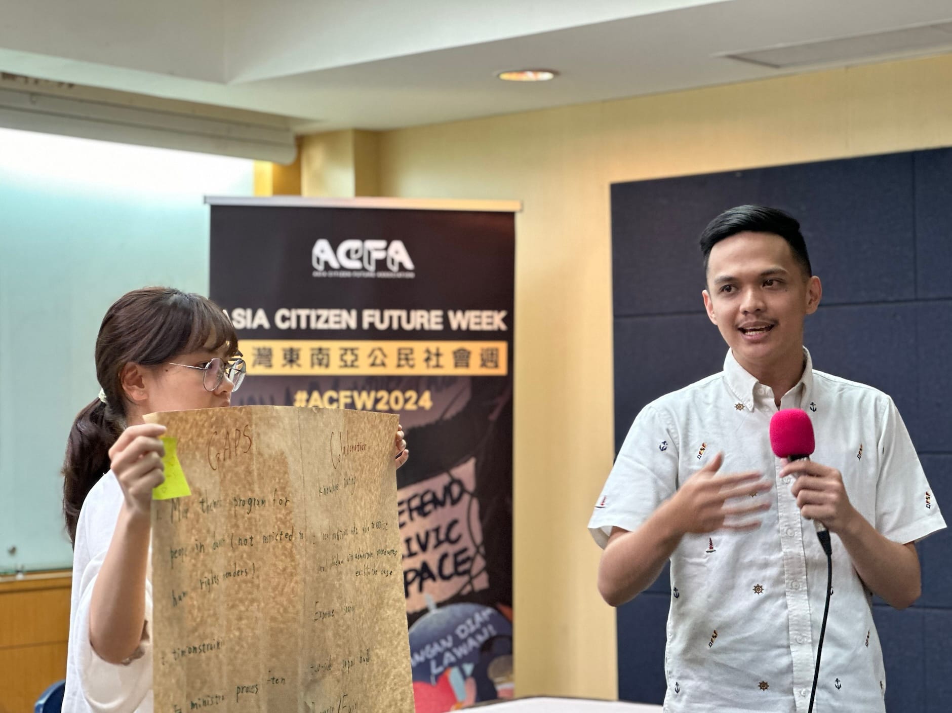 由亞洲公民未來協會主辦,國際特赦組織協辦之【台灣東南亞公民社會週 ACFW2024】,今年邀請近20個來自泰國、印尼、馬來西亞、緬甸、菲律賓、區域和國際公民社會組織代表赴台參與。ACFW2024除了促進台灣與東南亞公民社會之間的交流與合作,同時聚焦在台灣如何提升對亞洲地區的人權捍衛者的支持力道,並學習現存之國際與區域經驗。