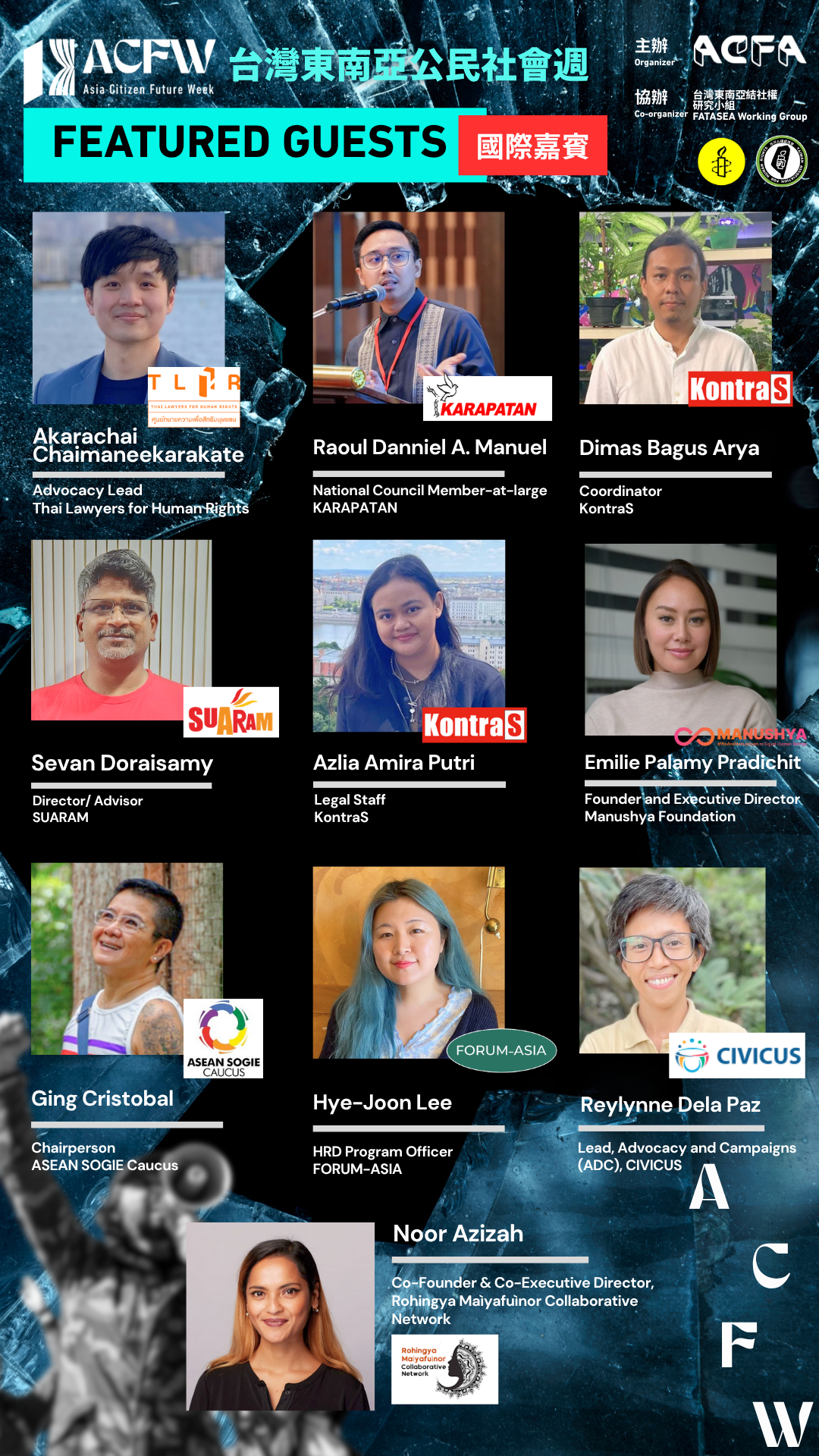 本場次試圖與區域內的人權捍衛者一起想像一個以亞洲為基地的區域人權捍衛者保護機制。我們將探討與描繪一個更具彈性、可近性、去殖民且以人權捍衛者為核心的保護機制,同時討論台灣作為短期轉移潛在接待國的可能性與挑戰。